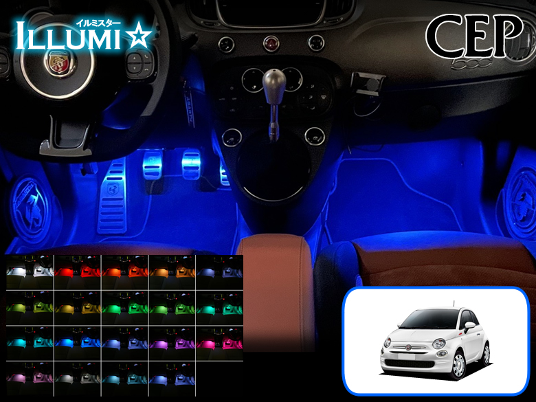 フィアット500・アバルト595専用 フルカラーLEDフットランプキット【イルミスター】