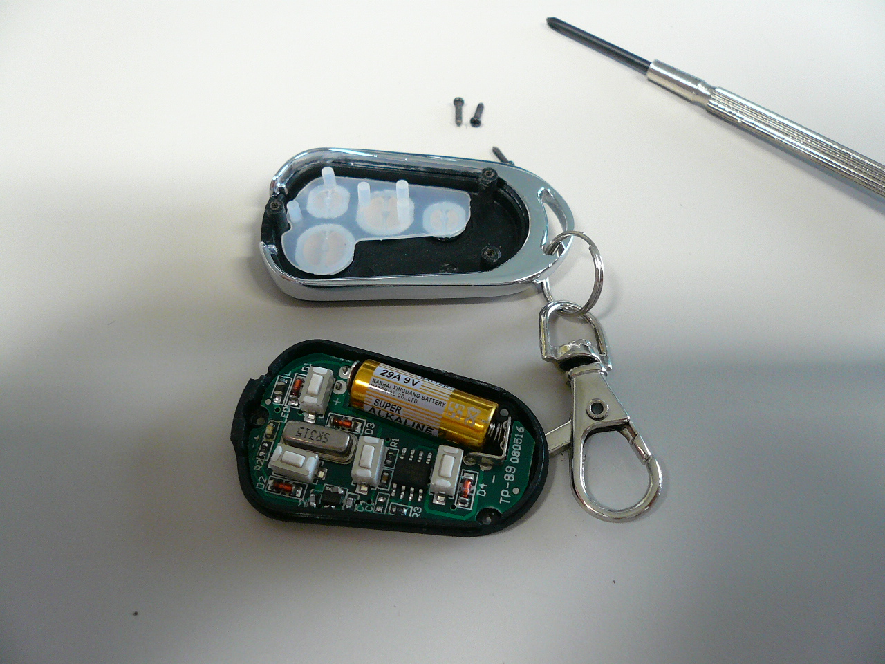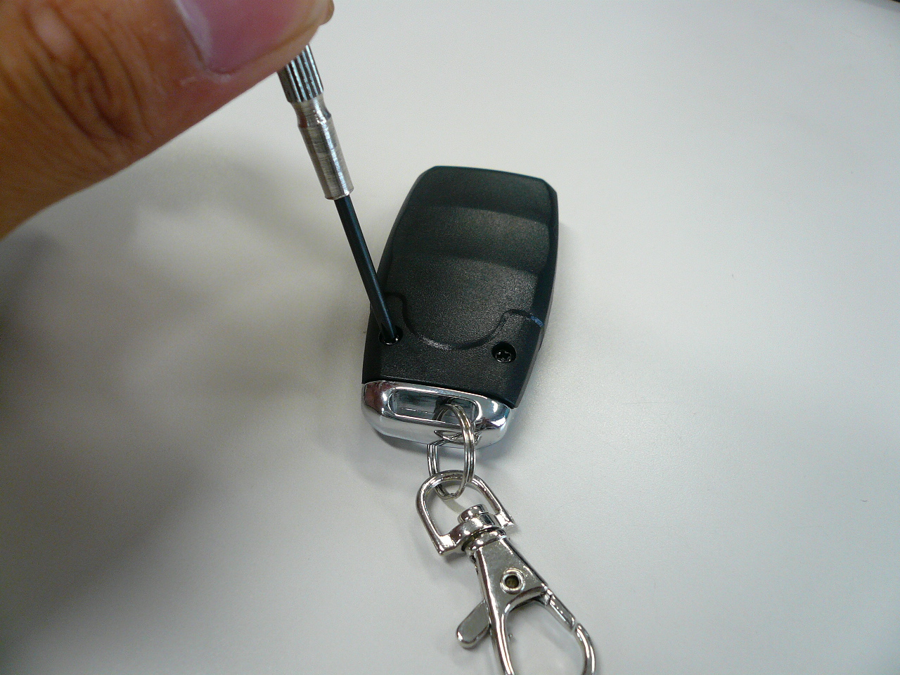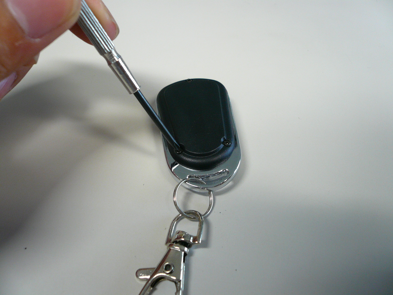 送信機を精密ドライバーなどで裏のねじ1本を開けます。