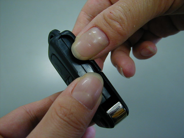 写真のように両手の親指で電池カバーを外します。