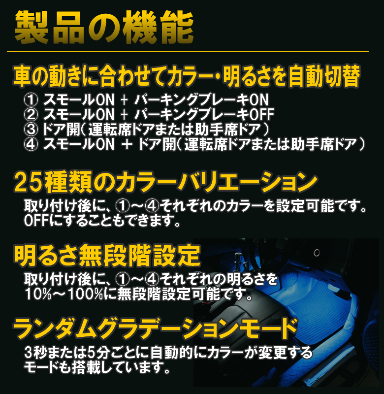 ■フットランプをお好みのカラーに設定できます。